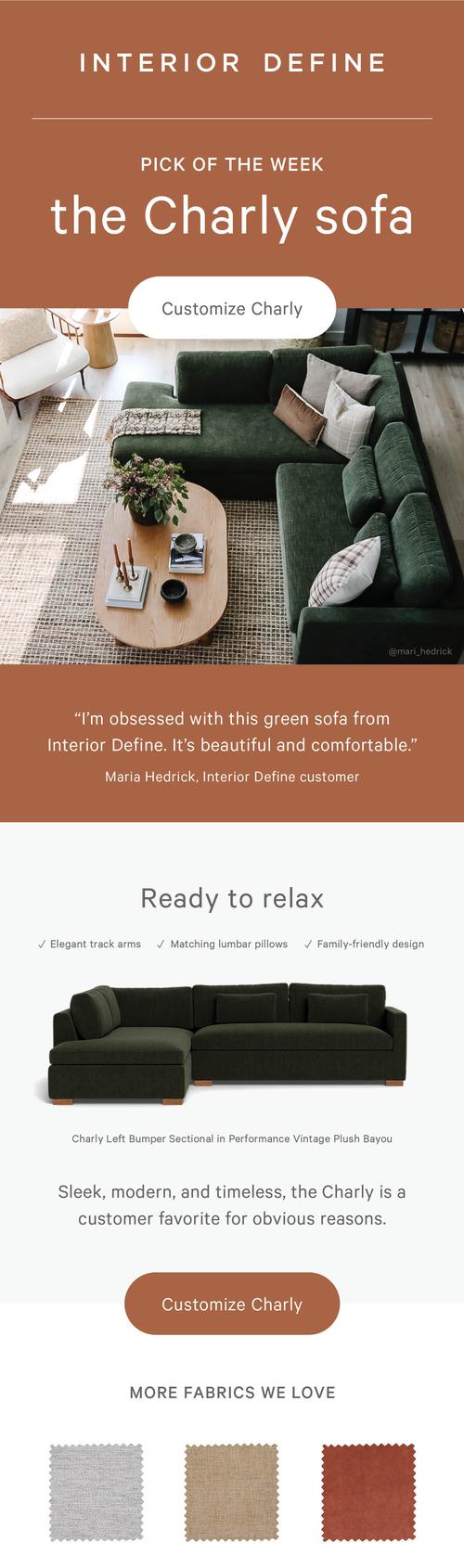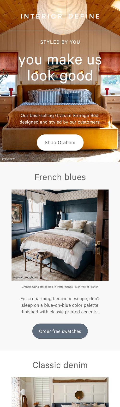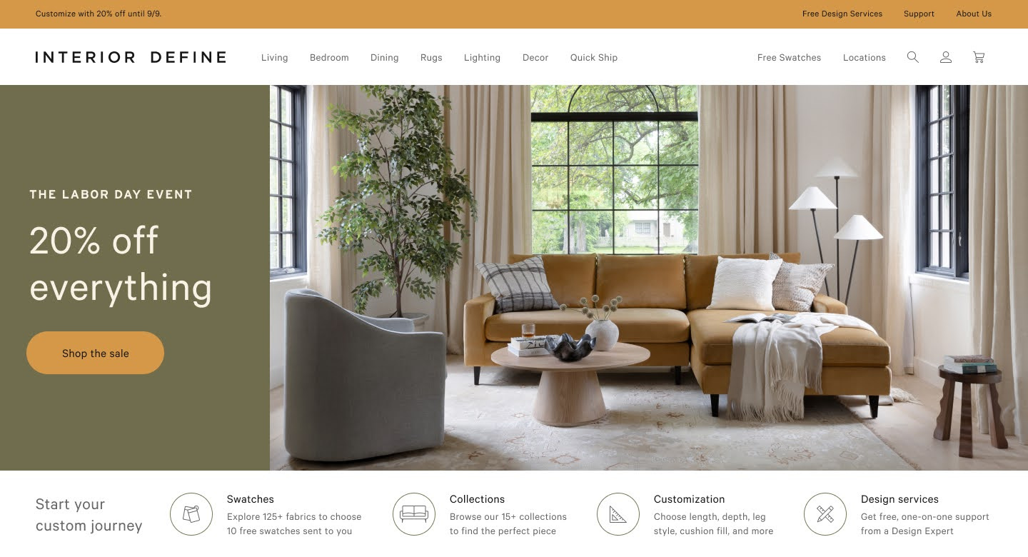 Interior Define is a home furniture brand that offers high-quality, custom furniture and home decor at an affordable price – both online and in-stores. Daily work includes creative for email marketing and paid channels, as well as ux/ui design for the online store.
